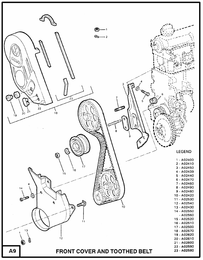 FRONT COVER AND TOOTHED BELT A9